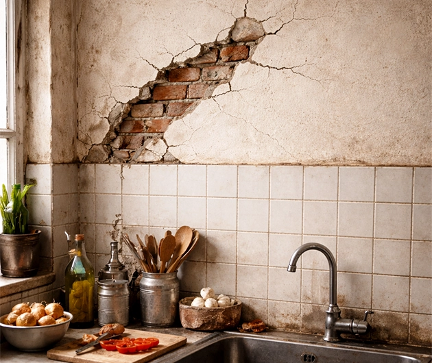 Hairline cracks in plaster are often cosmetic. However, if a crack is wider than a coin, runs diagonally across a wall, appears stair-stepped in brickwork, or is accompanied by doors that no longer close properly, it is a severe structural warning sign that requires immediate engineering assessment.