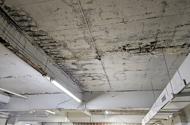 Concrete acts like a dense sponge. During a storm, the roof slab absorbs a massive amount of water. Even after the rain stops and the sun comes out, gravity continues to slowly pull that trapped, saturated water downwards through the concrete, causing your ceiling to drip for days.