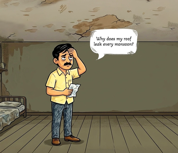 For most people, the arrival of the monsoon in Eastern India is a time of joy.But if you live on the top floor of an apartment building, or if you own an independent premium home with a flat terrace, the first heavy rain often triggers absolute dread. It usually starts with a faint, dark yellow stain spreading across your pristine white ceiling. Then, the expensive false ceiling begins to sag. Finally, the dreaded sound begins: the slow, rhythmic dripping of water directly into your living room or bedroom.